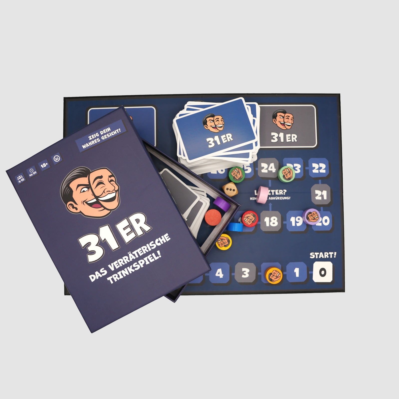Bist du ein aufrichtiger Freund – oder doch ein hinterlistiger Verräter? Finde es heraus mit 31er, dem verräterischen Trinkspiel für Erwachsene, das jede Party, jeden Spieleabend und jeden Geburtstag auf ein neues Level hebt! Dieses witzige Brettspiel steckt voller Spannung, überraschender Wendungen und unvorhersehbarer Momente, die selbst erfahrene Spieler aus dem Konzept bringen. Ob als lustiger Icebreaker oder als fester Programmpunkt für legendäre Abende mit Freunden: 31er sorgt für Lachanfälle, hitzige Diskussionen und eine gute Portion Misstrauen – perfekt als Trinkspiel für Gruppen ab 18 Jahren. Einfach zu lernen, immer anders und garantiert unvergesslich – 31er macht aus jeder Feier ein Ereignis, über das ihr noch lange sprechen werdet. Traust du deinen Freunden wirklich? Oder bist du selbst der 31er?